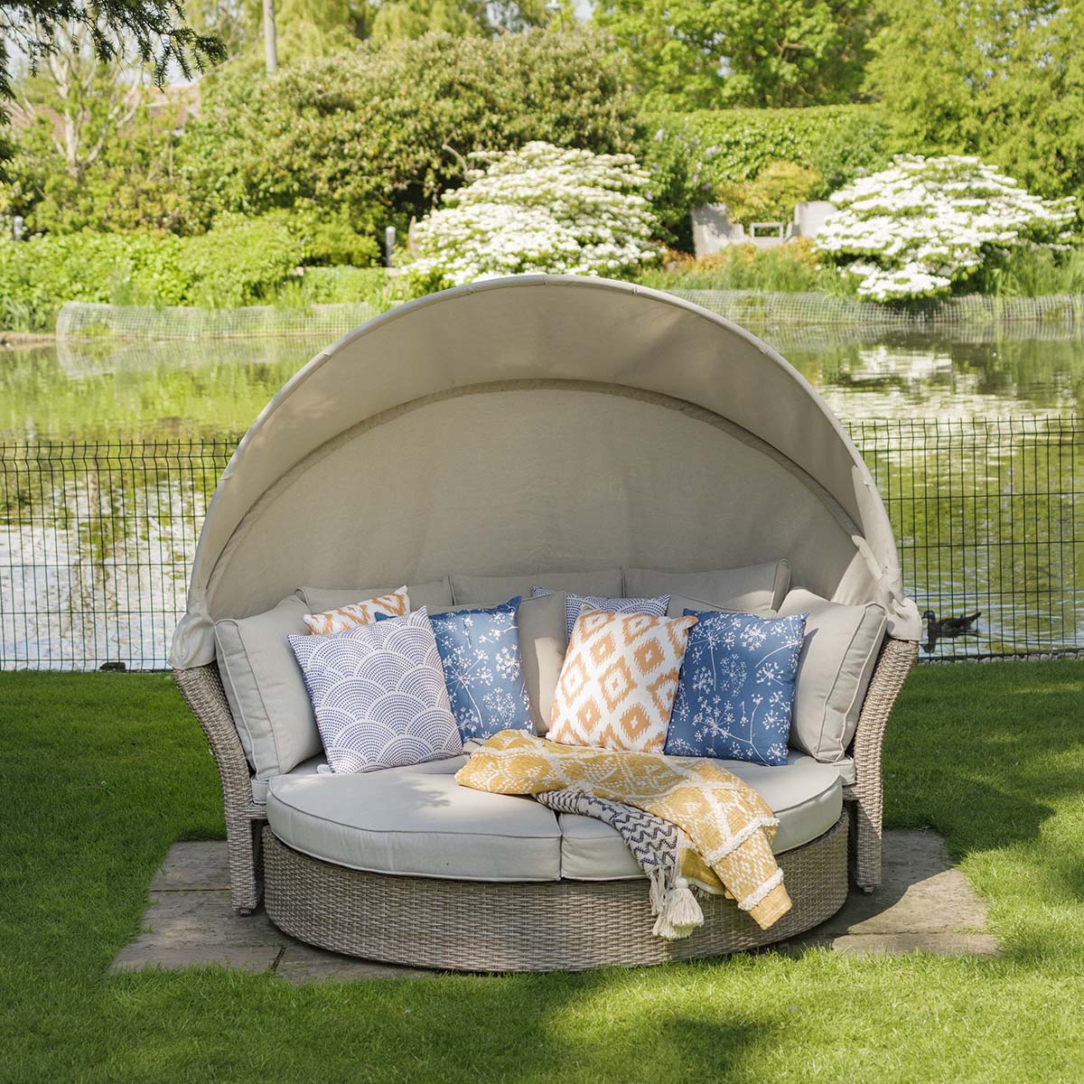 A luxurious and stylish retreat for your outdoor space. Designed for ultimate relaxation, this spacious daybed features a natural rattan-effect finish and plush cushions, making it the perfect spot to unwind in the sun or shade.